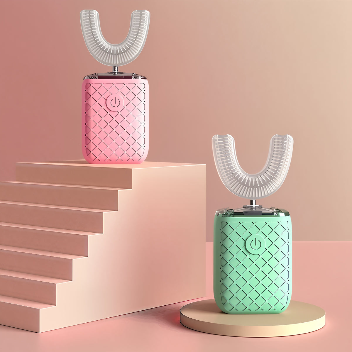 This U-shaped electric toothbrush is designed to clean your teeth quickly and effortlessly. Its soft silicone brush head wraps around your teeth, providing 360° coverage for a deeper and more consi...